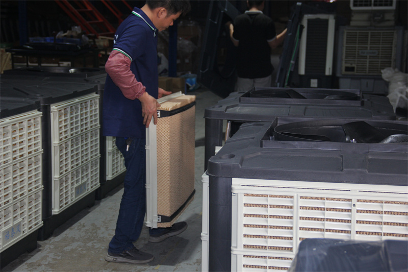 • 原理:通過風機將室外新鮮空氣引入,經過浸水的濕簾后,空氣與水分充分接觸并吸收顯熱,實現降溫、換氣、除塵和增加空氣含氧量的效果。